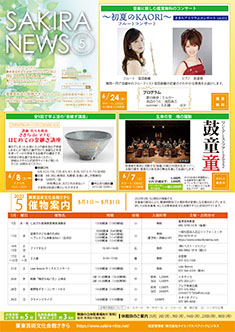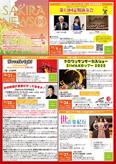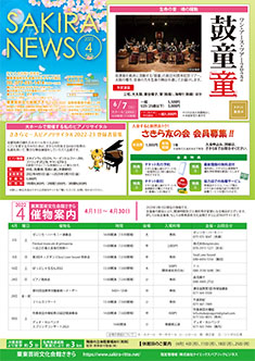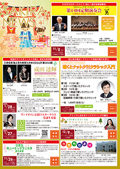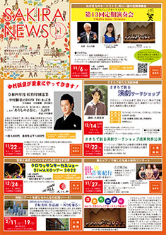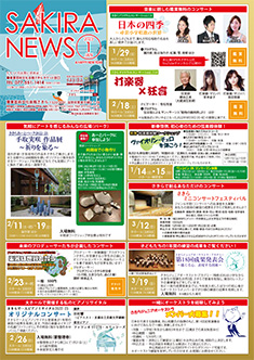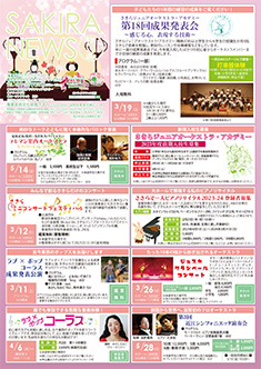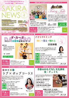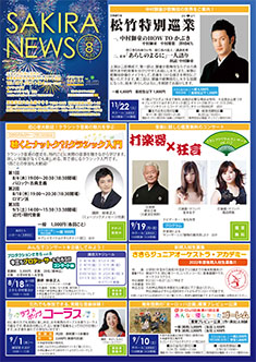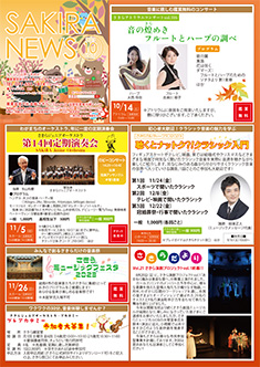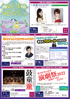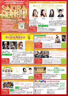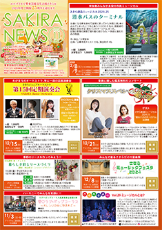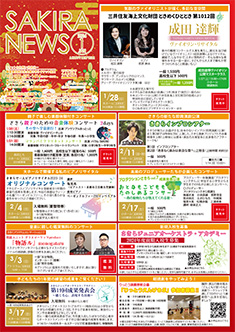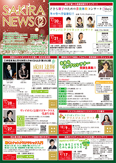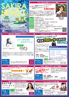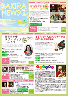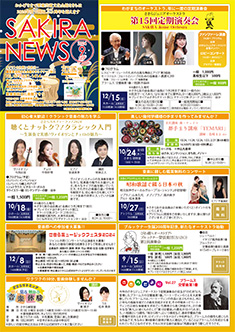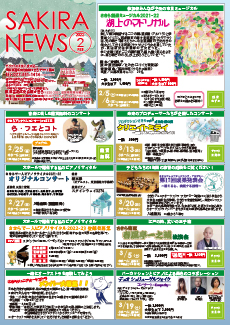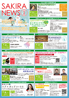 最新号 2024年 12月 ・さきら親子のための音楽体験コンサート「干支ものがたり」 ・プロダクションさきらVol.8成果発表公演 ・さきら創造ミュージカル2024-25「潜水バスのターミナル」 ・さきらジュニアオーケストラ第15回定期演奏会 12月の催物はこちら 最新号のPDFはこちら バックナンバー 2022年 4月 3月 2月 1月 2022年 8月 7月 6月 5月 2022年 12月 11月 10月 9月 2023年 4月 3月 2月 1月 2023年 8月 7月 6月 5月 2023年 12月 11月 10月 9月 2024年 4月 3月 2月 1月 2024年 8月 7月 6月 5月 2024年 12月 11月 10月 9月