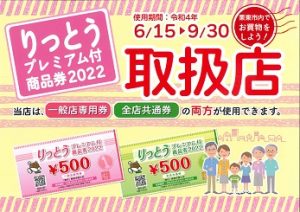 当館は「りっとうプレミアム付商品券2022」の取扱店です。
