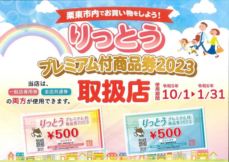 当館は「りっとうプレミアム付商品券2023」の取扱店です。
