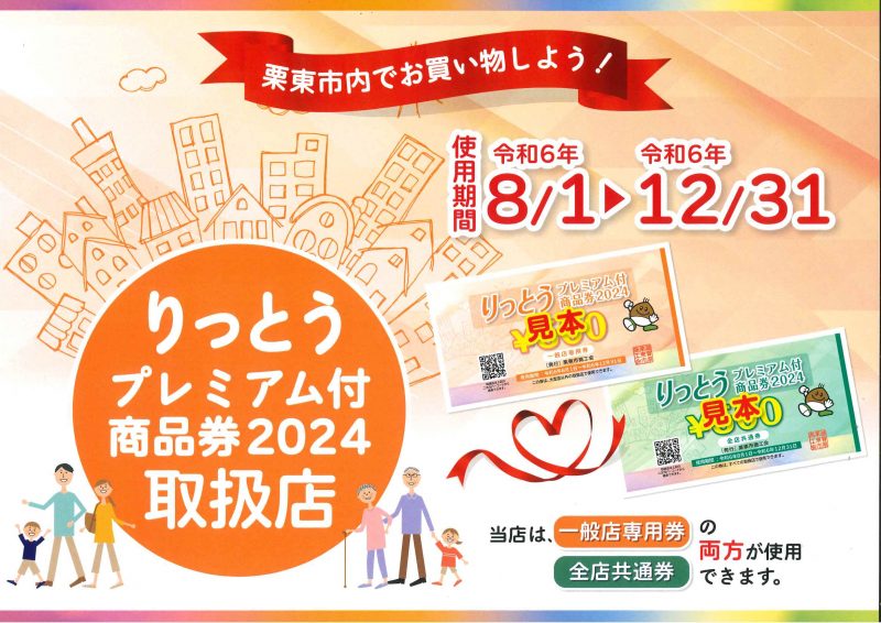 当館は「りっとうプレミアム付商品券2024」の取扱店です。